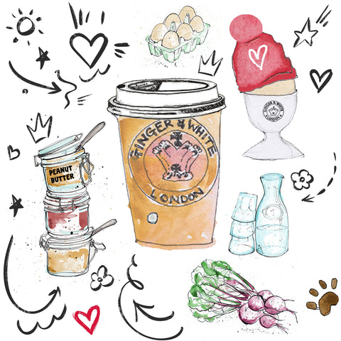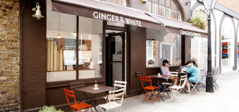 Ginger & White is a British cafe in Hampstead. We celebrate all the simple, yet best things in life - made by hand from scratch everyday. We serve dippy eggs, toasties, artisan coffee, banana chocolate chip cakes, turkey bacon, freshly squeezed orange juice and delicious homemade chunky peanut butter. Our biggest joy is to bring friends, family and the whole community together with ❤ in NW3.